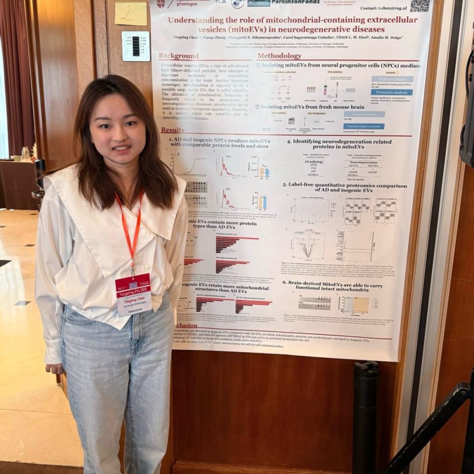 Tingting Chen, from the University of Groningen, has been honored with Best Poster Award 1 at the 2nd World Congress on Targeting Extracellular Vesicles 2025, held in Valencia, Spain.