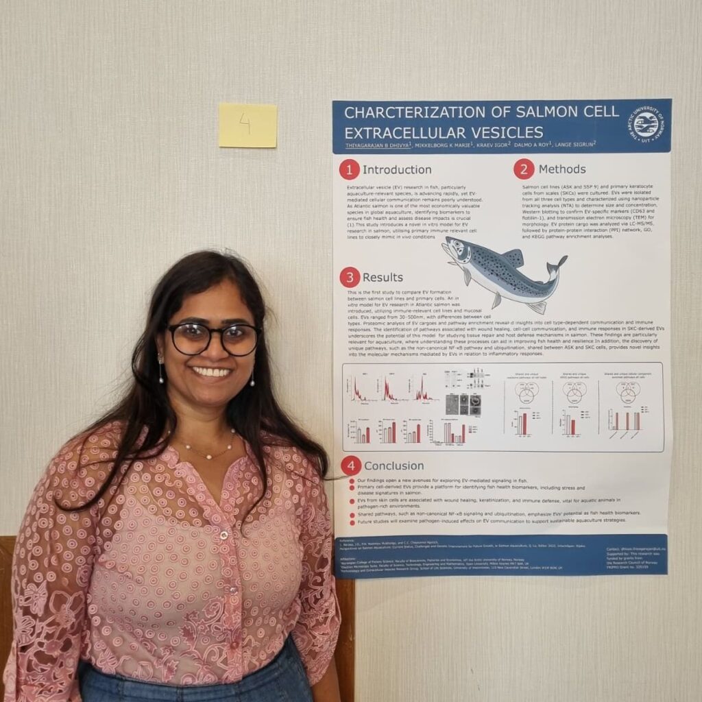 Dhivya Borra Thiyagarajan, from the Norwegian College of Fishery Science, has been awarded Best Poster Award 2 at Targeting EVs 2025, in recognition of her innovative research at the forefront of extracellular vesicle science in aquatic systems.